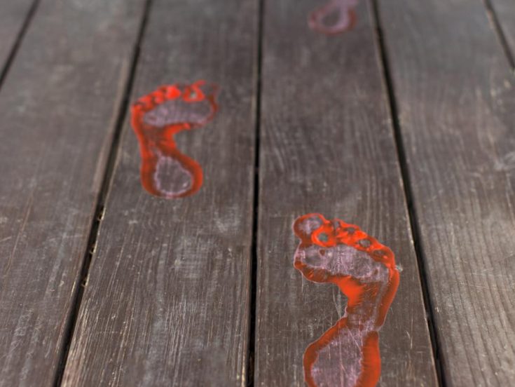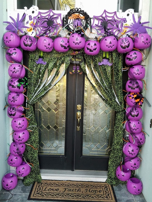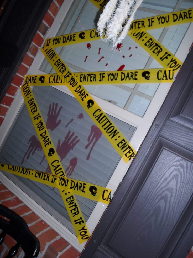 Pretty cool and straightforward, cost-efficient outdoor Halloween decoration that you can add in no time. I mean, how easy is it to add a bloody footprint in your walkway and stairs.